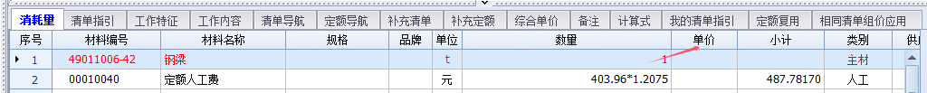 使用“导入(合并)工程”后,被合并进的节点的定额消耗量中,材料单价为空?