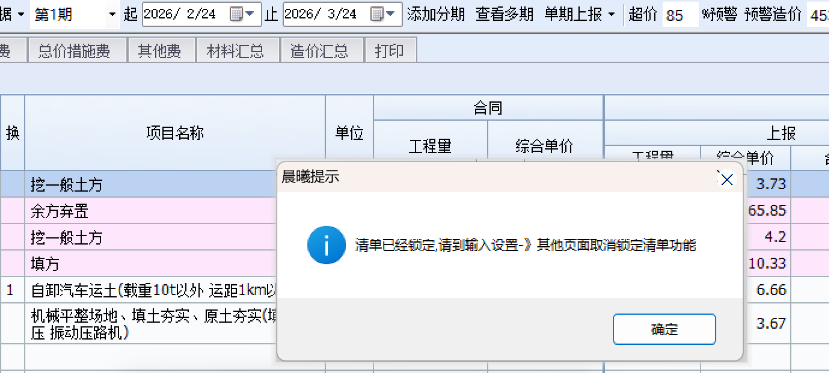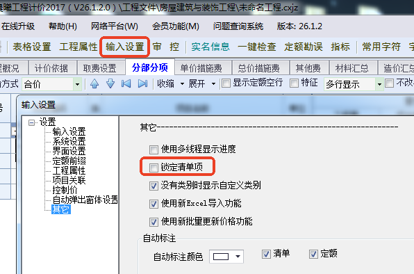2017计价软件工程文件,导入至验工计价软件,提示:“清单已经锁定,请到输入设置-》其他页面取消锁定清单功能”,在验工计价软件中,如何调用“输入设置”窗口?